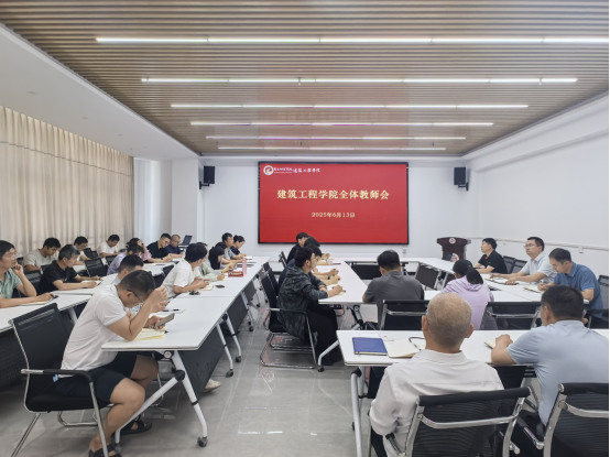 2025年6月13日,建筑工程学院召开全体教师会议,集中学习统战政策及新时代最新统战精神,切实将思想和行动统一到党中央决策部署上来。